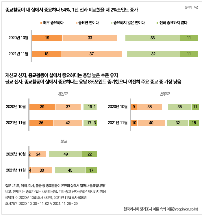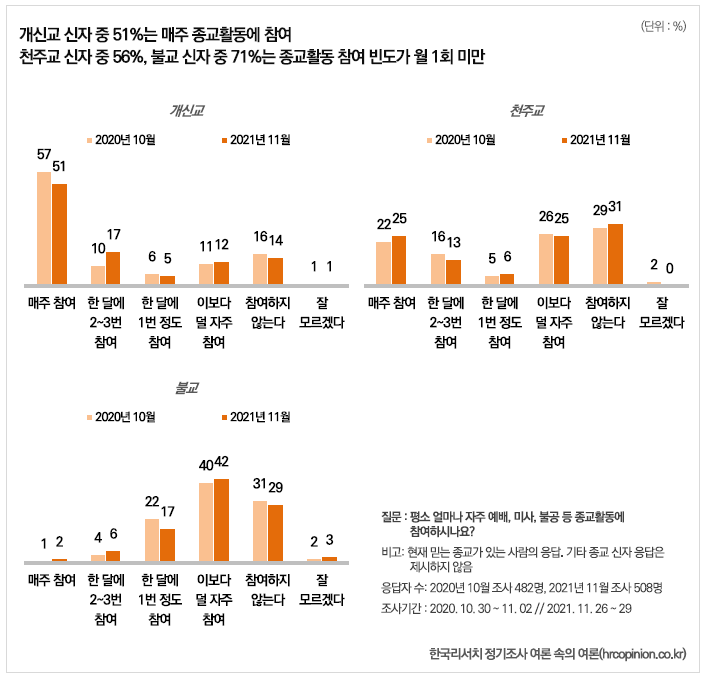 [종교지표 - 2021년] 종교인구 현황과 종교 활동 (hrcopinion.co.kr)
