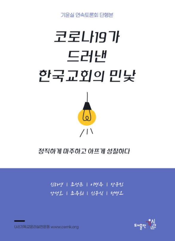 지난해 <코로나19와 한국교회 연속토론회>를 개최한 기독교윤리실천운동이 시즌1 토론회(코로나가 드러낸 한국교회의 민낯, 정직하게 마주하고 아프게 성찰하다) 내용을 엮어 책으로 출간했다.