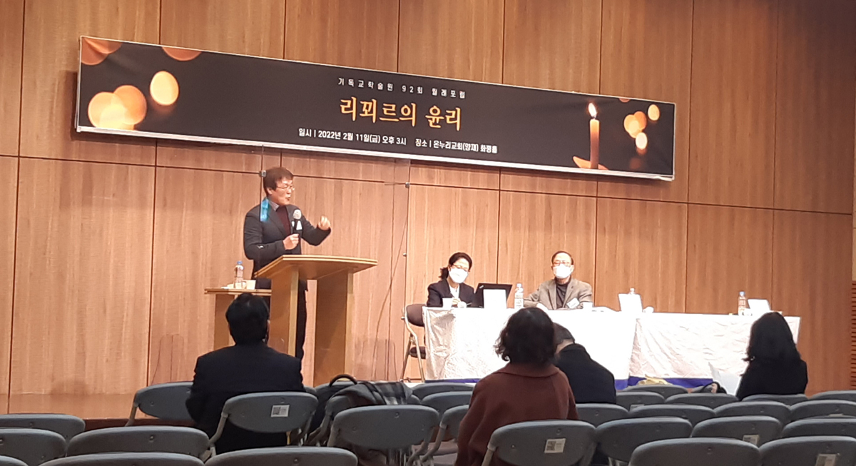 기독교학술원(원장:김영한 박사)이 지난 2월 11일(금) 오후 3시 양재 온누리교회 화평홀에서 '리꾀르의 윤리'라는 주제로 '제92회 월례포럼'을 개최했다.