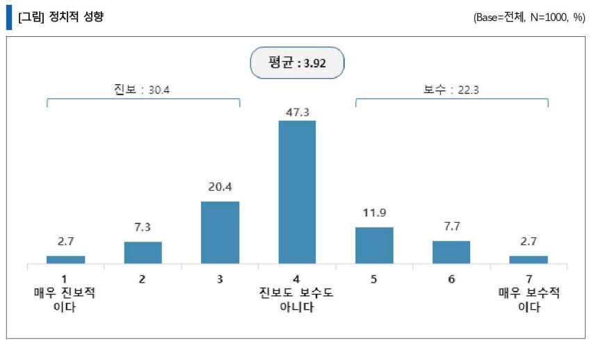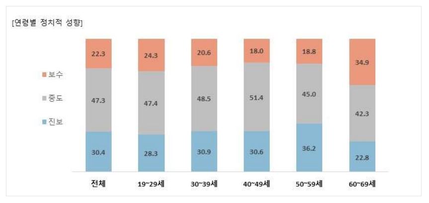 이어 "이번 조사 결과는 청년세대는 정치적으로 진보적이고 기성세대는 보수적이라는 사회적 통념이 더 이상 통하지 않는다는 사실을 보여 준다"라고 분석했다.