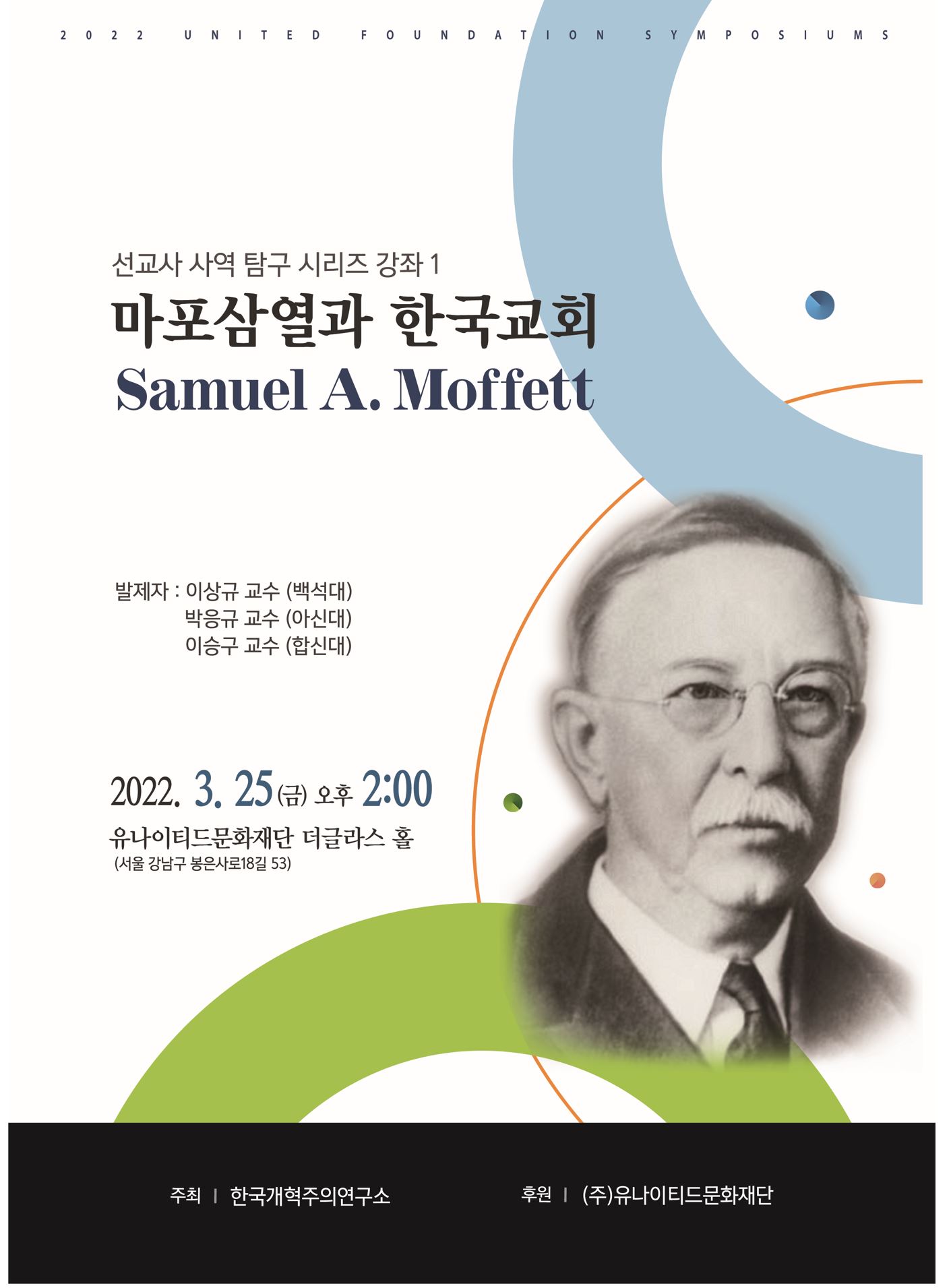 이날 강좌는 '마포삼열(Samuel A. Moffett)과 한국교회'라는 주제로 진행된다.