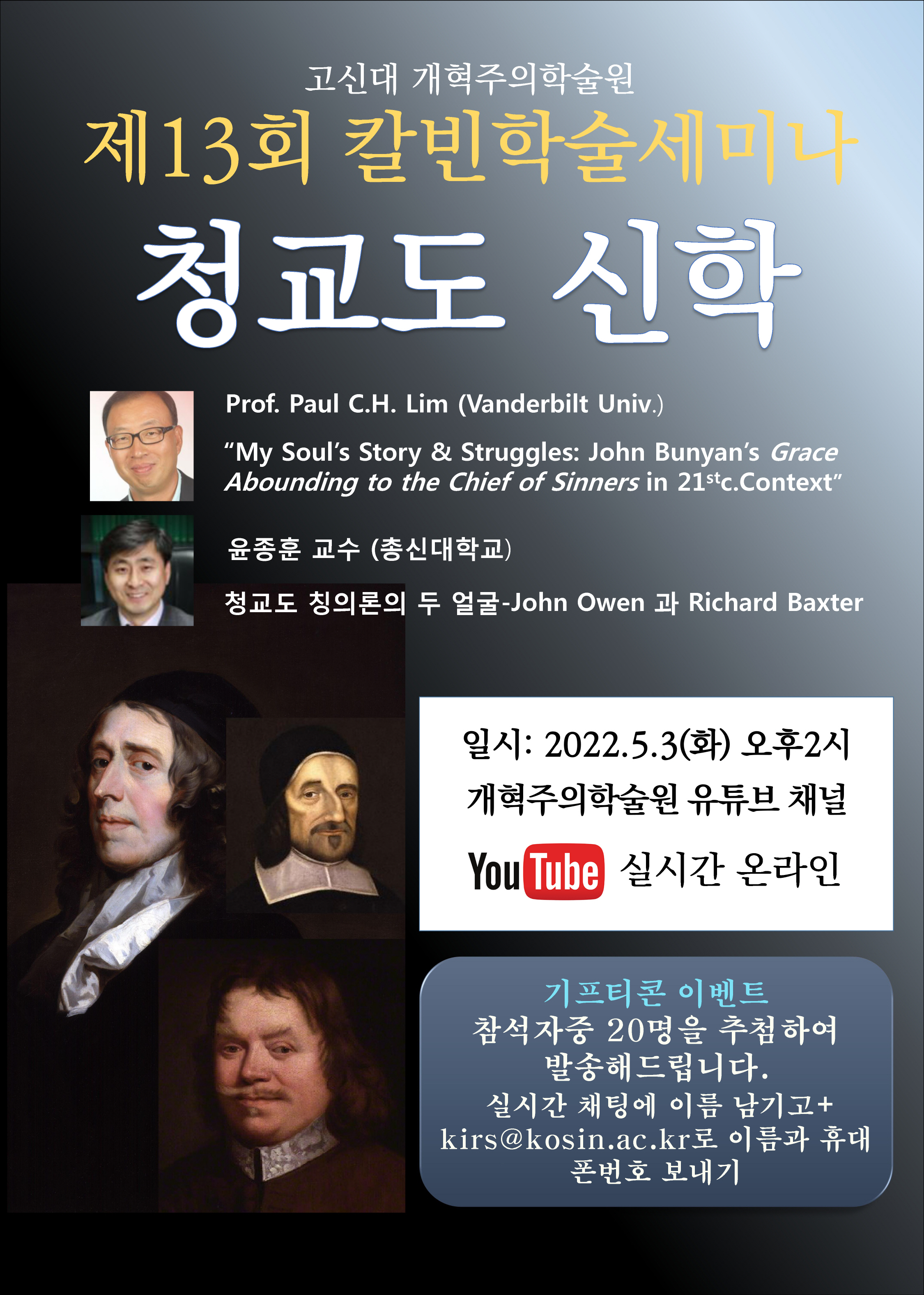 고신대 개혁주의학술원(원장:이신열 박사)이 오는 5월 3일 오후 2시 유튜브 채널(동 학술원)에서 '제13회 칼빈학술세미나'를 진행한다.