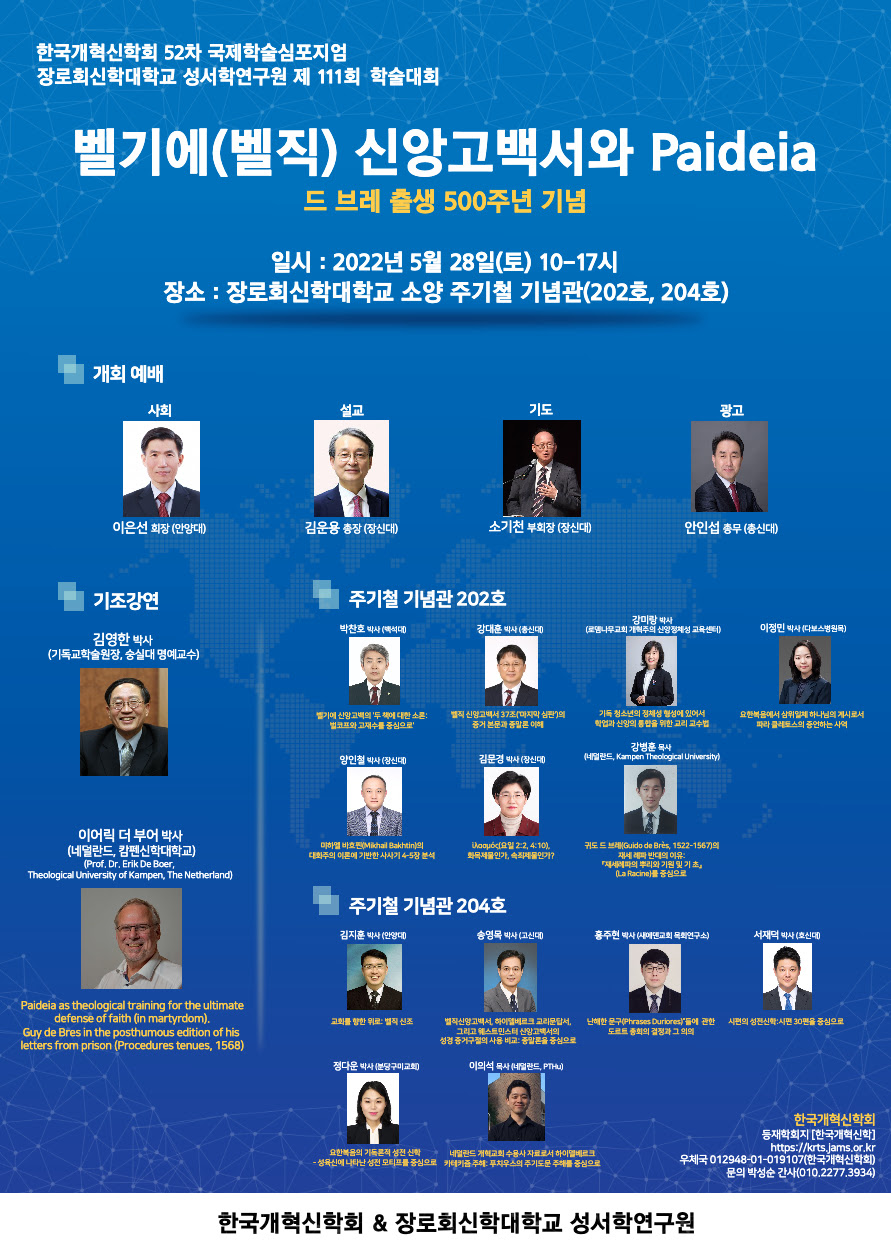 [학술대회 안내] 한국개혁신학회, 5월 28일 '벨기에(벨직) 신앙고백서와 파이데이아'