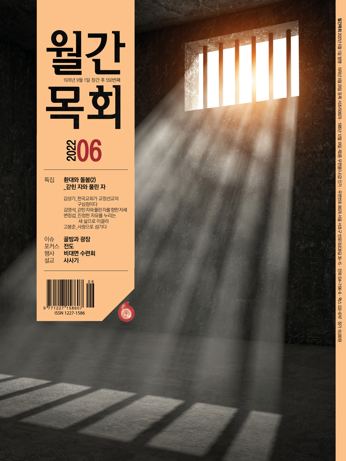 월간목회 6월호 특집기사 <환대와 돌봄(2):갇힌 자와 풀린 자>에서는 재소자와 출소자를 향한 교회적 관심을 촉구한다.