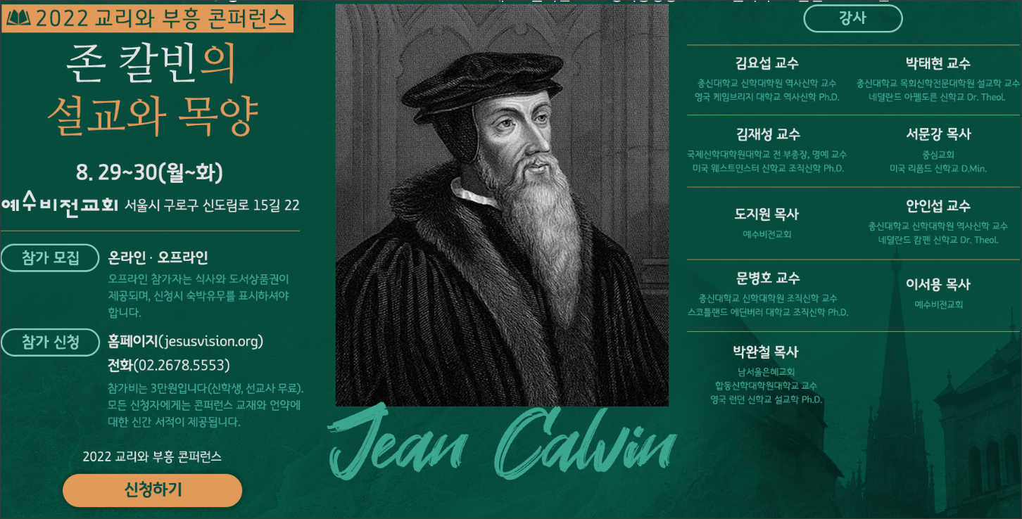 [콘퍼런스 안내] 교리와 부흥 콘퍼런스, 8월 29~30일, '존 칼빈의 설교와 목양'