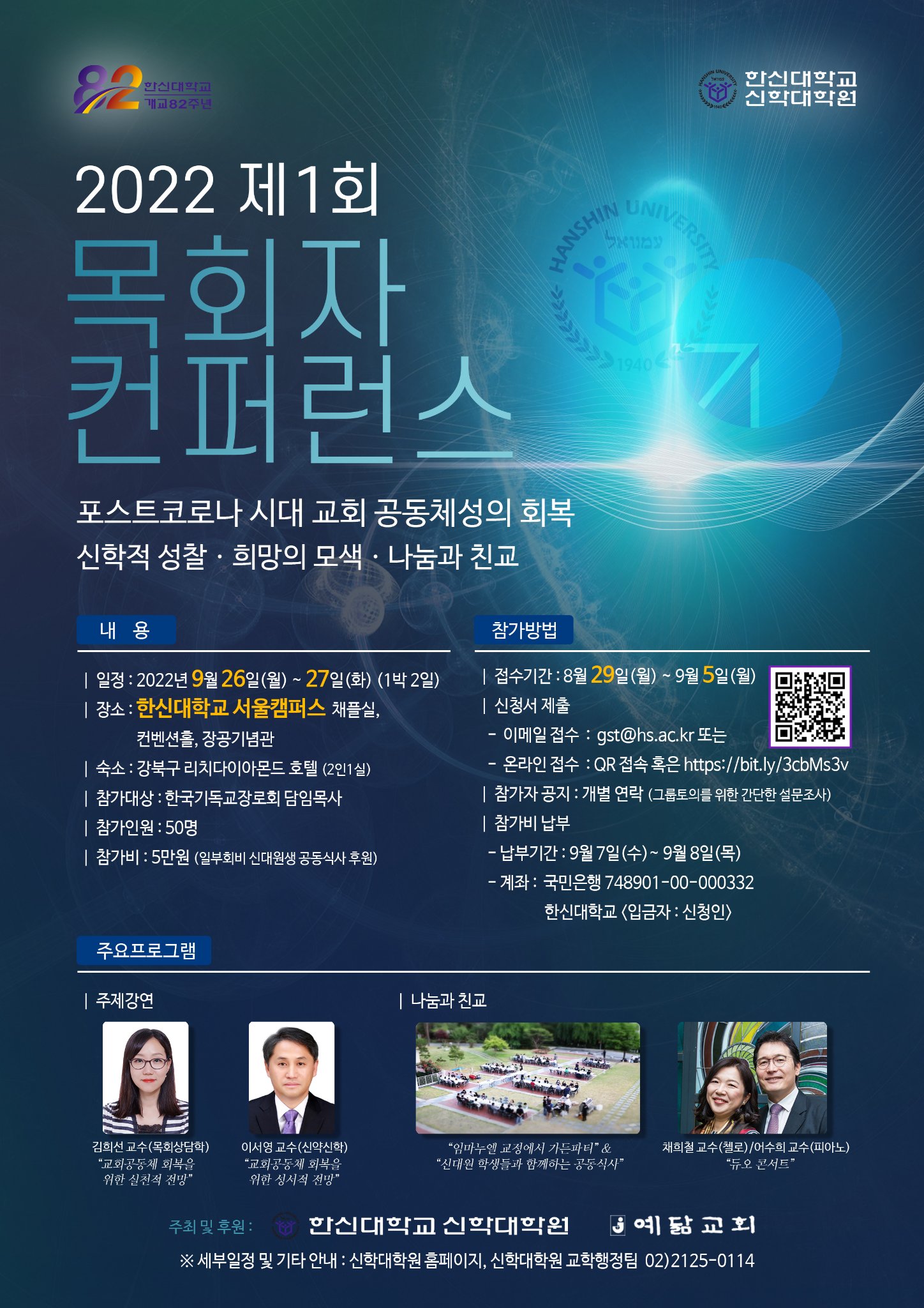 한신대학교 신학대학원이 오는 9월 26일(월)부터 27일(화)까지 한신대 서울캠퍼스 컨벤션홀 및 장공기념관 강의실에서 '제1회 목회자 콘퍼런스'를 개최한다.
