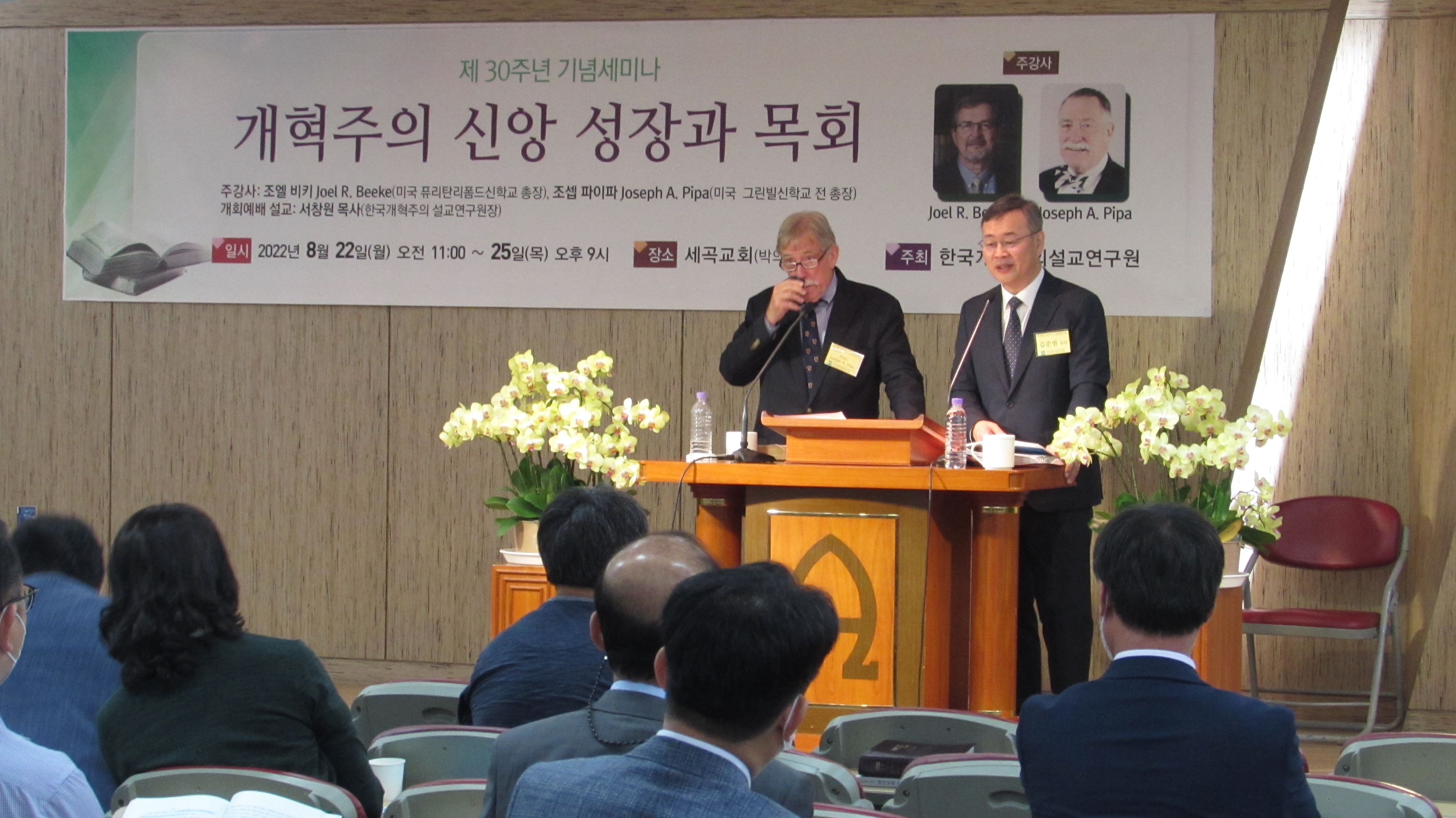 한국개혁주의설교연구원(원장:서창원 목사)이 지난 8월 22일(월) 세곡교회(담임:박의서 목사)에서 '개혁주의 신앙 성장과 목회'를 주제로 설립 30주년 기념 세미나를 개최했다. 25일(목)까지 진행되는 이번 세미나에는 미국 퓨리탄리폼드신학교 총장인 조엘 비키(Joel R. Beeke) 박사와 미국 그린빌신학교 전 총장 조셉 파이파 목사(Joseph A. Pipa)가 주 강사로 참여했다. 조엘 비키 박사는 △믿음의 확신과 성장 △개인기도와 성 △비평주의 대처방안과 성장 △고난에 대한 그리스도 중심의 대처와 성장 △경험적 적용이 있는 설교와 성장 등 믿음과 신앙생활의 성장에 대해 강의했으며, 조셉 파이파 박사는 △개혁주의 교회론 △개혁주의 예배론 △개혁주의 성경관 △개혁주의 목회적 돌봄 △개혁주의 주일성수 등에 대해 강의했다. 두 강사의 강의 내용 중 일부를 정리했다. <편집자 주>