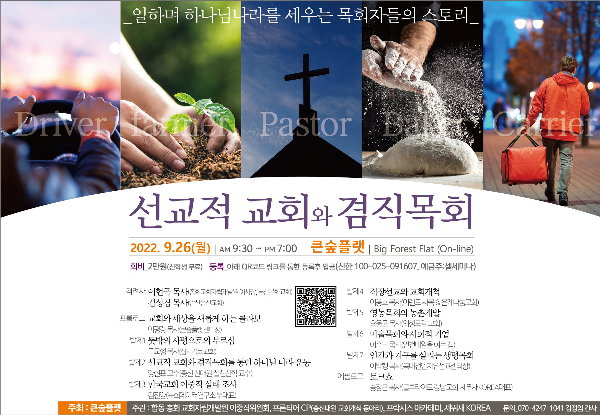 큰숲플랫(센터장:이평강 목사)이 예장 합동총회 교회자립개발원 이중직위원회, 세뛰새KOREA 등과 함께 '선교적 교회와 겸직목회'를 주제로 온라인 세미나를 개최한다.