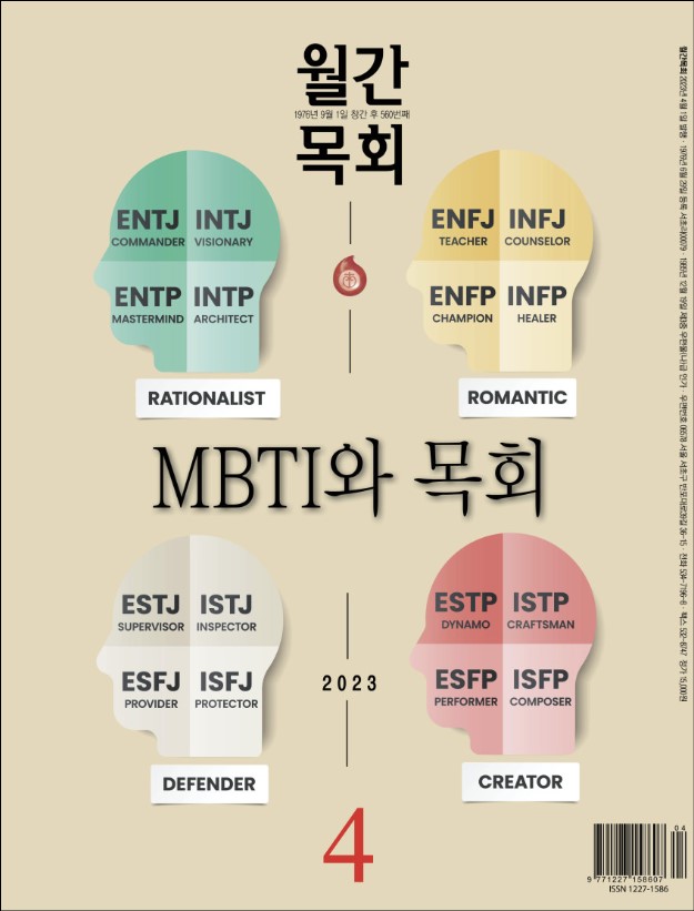 이와 관련 월간목회 4월호가 <MBTI와 목회>라는 특집기사를 통해 목회적 관점에서 MBTI의 장단점을 살펴보면서 목회사역에 활용할 수 있는 방법을 모색했다.