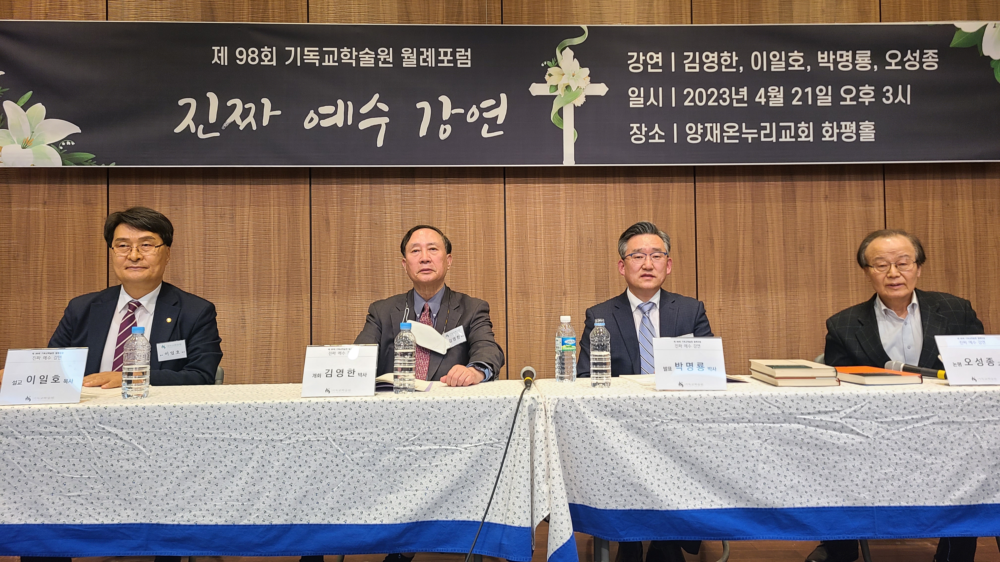 이날 발제자로 나선 박명룡 목사는 '진짜 예수'라는 제목의 발표를 통해 "우리는 오직 사복음서를 통해서 진짜 예수를 만날 수 있다. 사복음서에는 실제 역사 속에 사셨던 예수의 생애와 가르침이 고스란히 실려 있다. 진짜 예수의 이야기는 구전 중심의 유대문화 속에서 가장 짧은 구전 전승 기간을 거치면서, 그 목격자들의 증언이 변형되지 않고 매우 정확하게 후대에 전달될 수 있었다"라고 설명했다.
