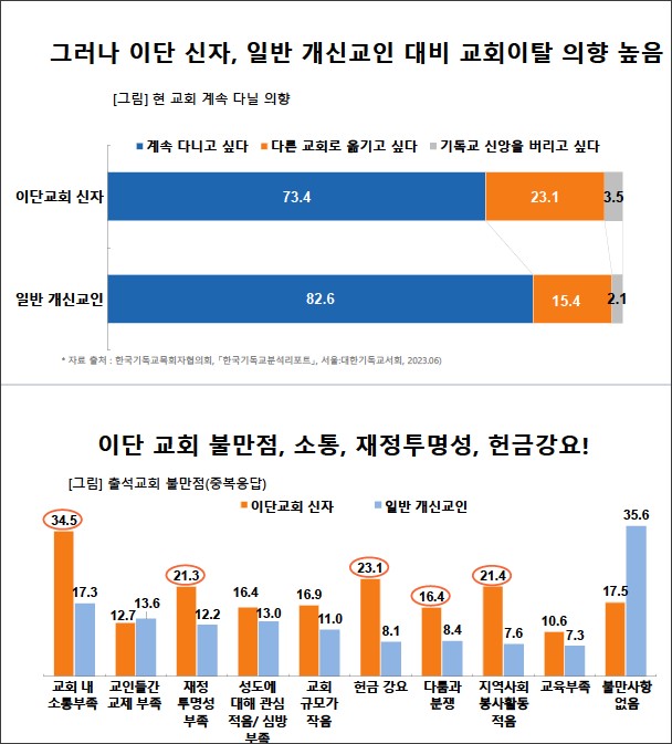 그 이유에 대해 파악한 결과, 교회 내 소통부족, 재정투명성 부족, 헌금 강요, 다툼과 분쟁 등으로 나타났다.