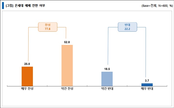 온세대 예배에 대한 생각을 물은 결과, 온 세대를 찬성하는 이들은 77.8%, 반대는 22.2%로 찬성이 압도적으로 높게 나타났다. 50대가 83.3%로 가장 높았는데 세대별로 큰 차이는 없었다.