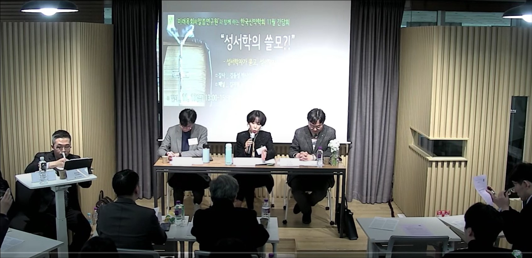한국신약학회(회장:이민규 박사, 한국성서대 교수)가 지난 11월 17일(금) 오후 1시 미래목회와말씀연구원(원장:김지철 목사)과 함께 <성서학의 쓸모?!:성서학자가 묻고, 성서학자가 답하다>라는 주제로 간담회를 가졌다.
