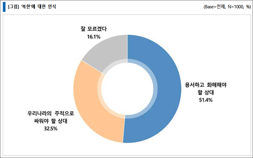 51.4%, "북한은 용서하고 화해해야 할 대상"