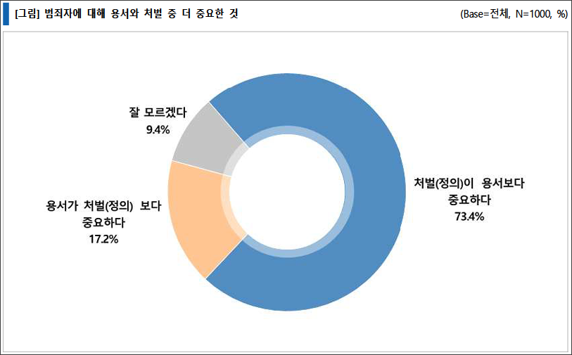 73.4%, "범죄자는 용서보다 처벌이 우선"