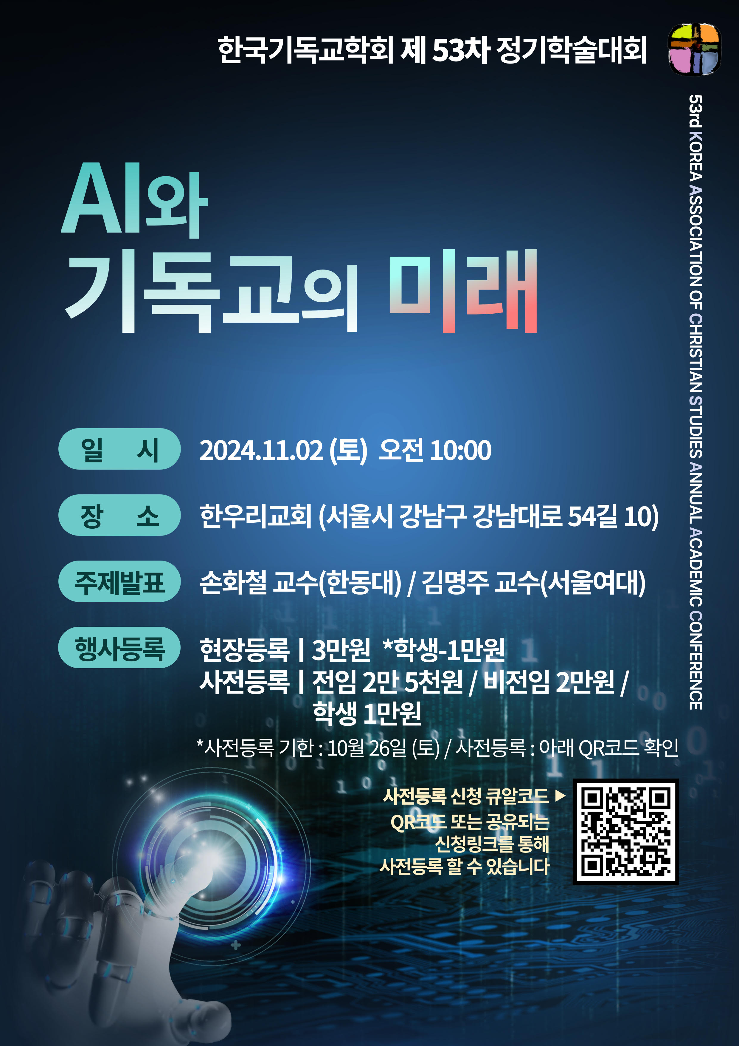 올해는 <AI와 기독교의 미래>라는 주제로 진행되며, 손화철 박사(한동대 교수)와 김명주 박사(서울여대 교수)가 주제발표를 하며, 각 학회에서 주제발표 및 자유연구논문을 발표할 예정이다.