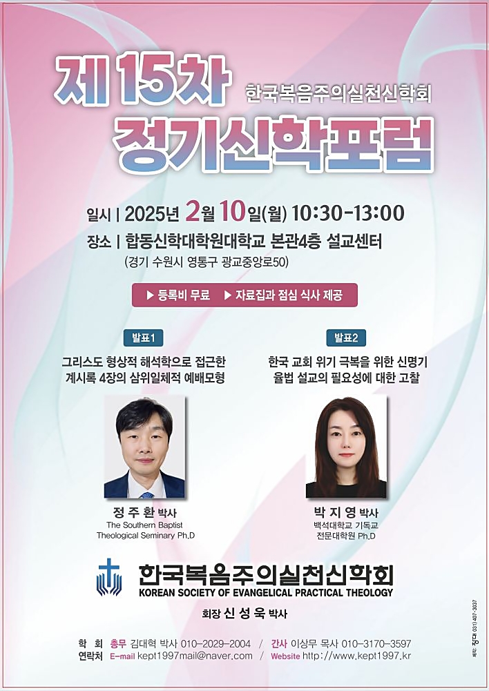 | 한국성경신학회, 2월 10일 제54회 정기논문발표회 개최 (0) | 2025.02.03 |
