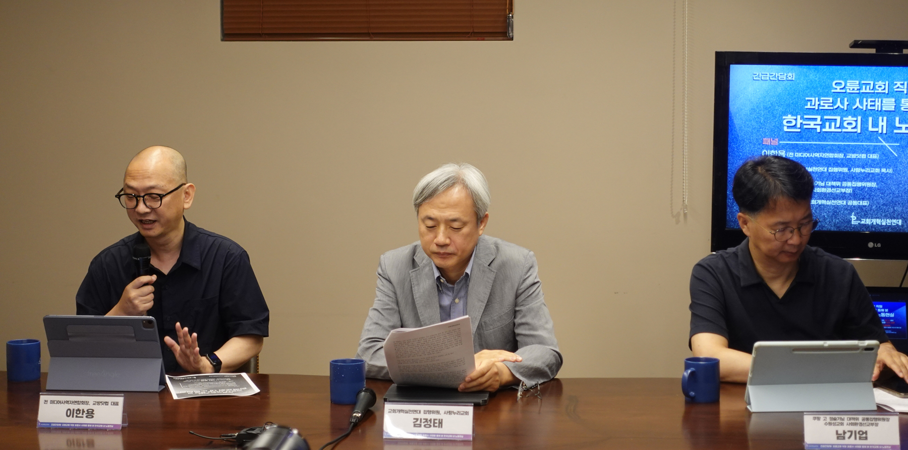 이날 간담회는 개혁연대 공동대표 남오성 목사의 사회로 전 미디어사역자연합회장 이한용 대표(교방닷컴), 개혁연대 집행위원 김정태 목사(사랑누리교회), 쿠팡 故정슬기님 대책위 공동집행위원장 남기업 소장 등이 패널로 참여했다.