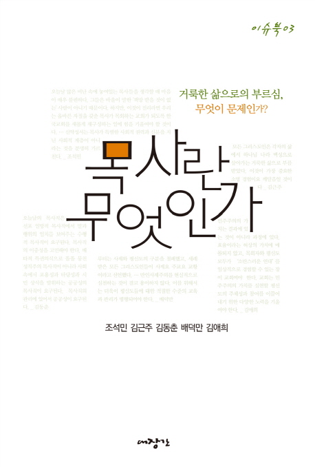그렇다면 과연 ‘목사’는 무엇일까? 기독연구원 느헤미야 연구위원인 조석민, 김근주, 김동춘, 배덕만 교수를 비롯해 교회개혁실천연대 김애희 국장이 ‘목사란 무엇인가?’(대장간)를 최근 출간했다.