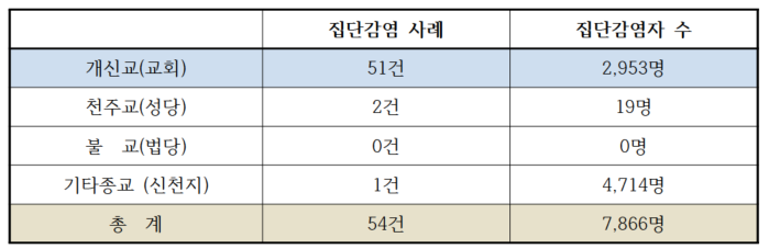 한국 개신교회의 코로나 19 집단감염 사례가 타 종교에 비해 가장 빈번하게 발생하고 있는 것으로 나타났다.