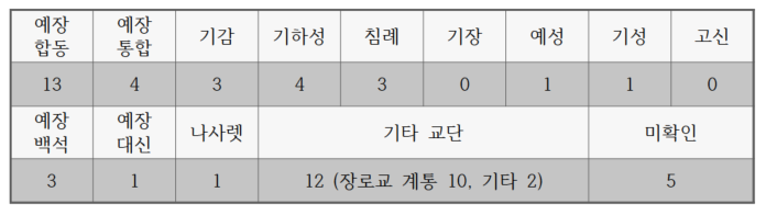 교단별로 분석한 결과 예장합동, 예장통합, 기하성(순복음), 예장백석/대신 순으로 집단감염 사례가 발생했다.