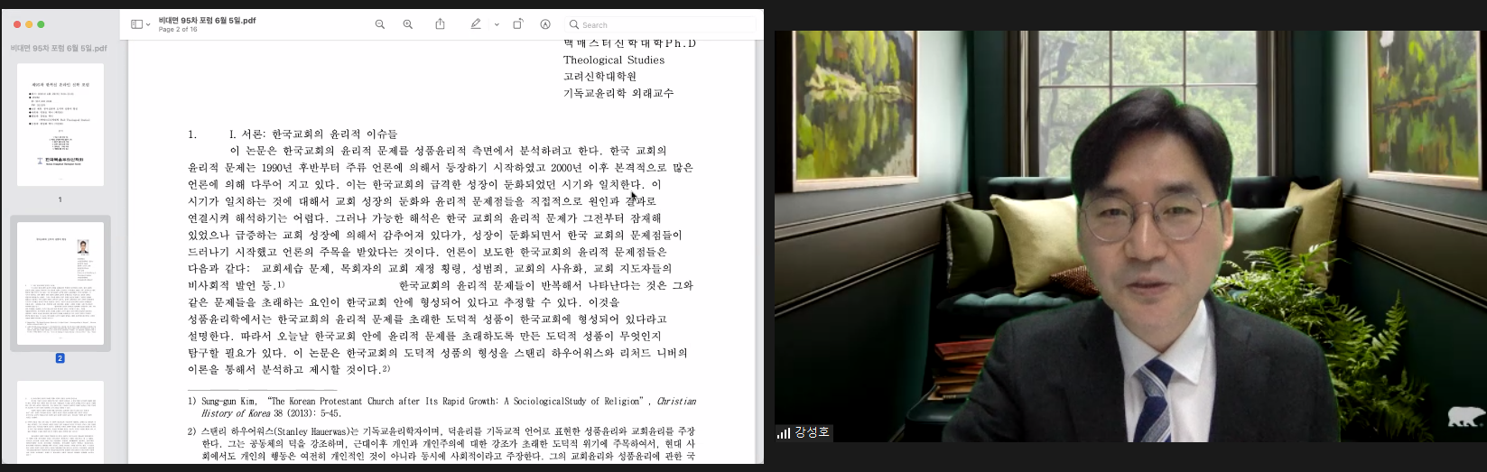 한국복음주의신학회가 지난 6월 5일 오전 9시 ZOOM으로 개최한 '제95차 온라인 신학포럼'에 발제자로 참여한 강성호 박사(고신대, 기독교윤리학)가 이같이 주장했다.