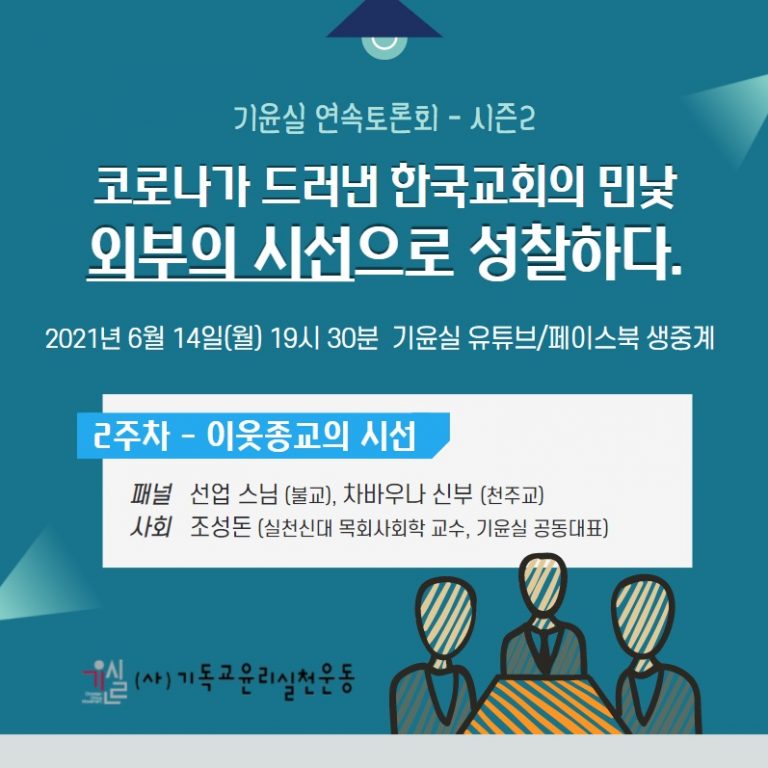 기독교윤리실천운동(이하 기윤실)이 6월 한 달간 <코로나19와 한국교회> 연속토론회를 기획하고, 현재 시즌2를 진행해오고 있다.