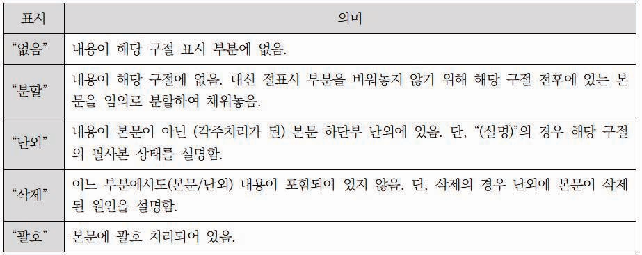 2.2 “없음” 구절들에 대한 국역 성경들의 상태와 처리 방식