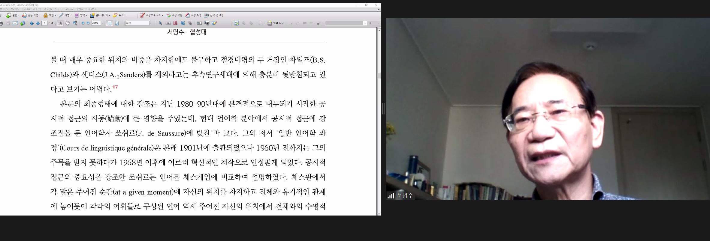 "거시적으로 볼 때 시대는 이제 획기적인 대변화의 국면으로 접어들고 있다. 인문학의 한 분야로서 성서학은 이런 시대적 변화에 조응하는 방향설정(reorientation)을 새롭게 해야 할 시점에 서 있다."