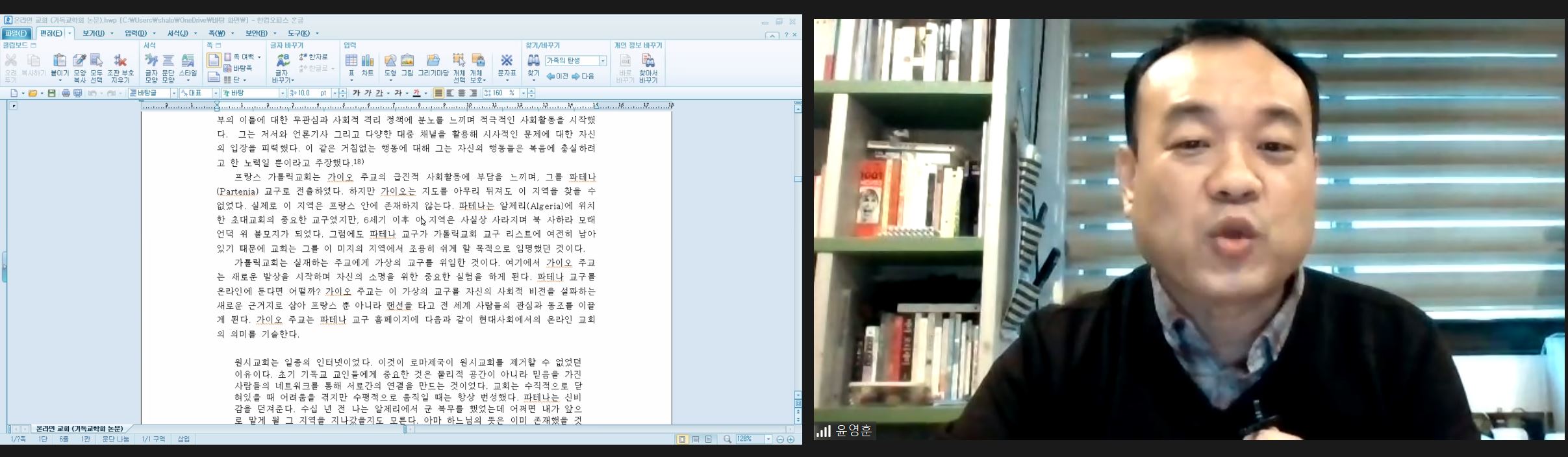 한국문화신학회에서 '포스트 코로나시대 온라인 교회의 가능성에 대한 연구'라는 제목으로 발표한 윤영훈 박사(성결대)의 주장이다.