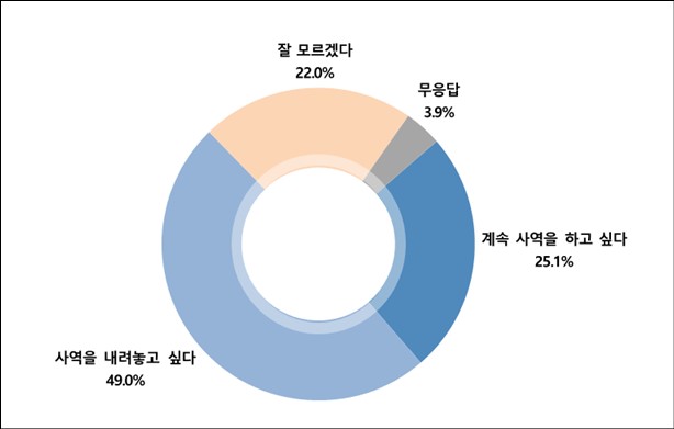 교회에서 직분을 유지하고 있는 만 70세 이하 고령 교인의 절반 정도인 49.0%가 향후 교회 사역 참여를 내려놓고 싶다고 응답했다. 계속 사역을 하고 싶다고 응답한 것은 25.1%에 불과했다.