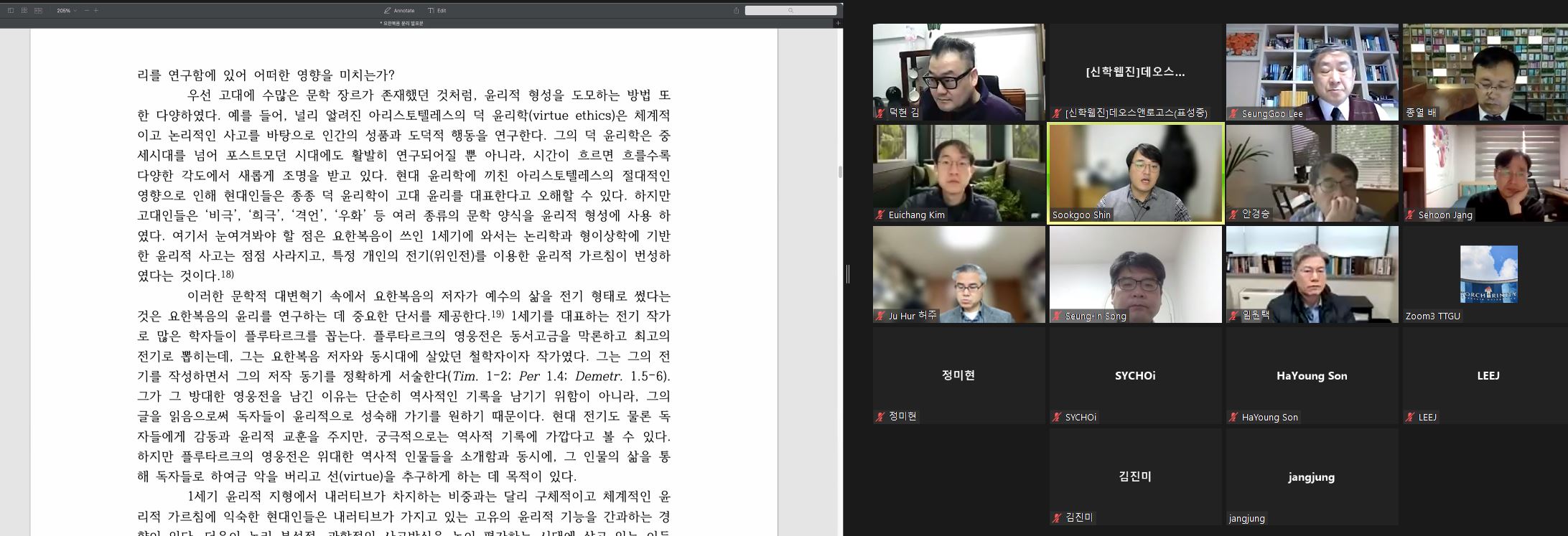 신 박사는 "실제로 1세기 철학자들이 윤리적 사상을 연구하다 보면 윤리의 가장 궁극적인 목적이 단순히 타인을 향한 선한 행동과 의도를 넘어 신을 향한 경건에서 발견된다"라며 "이와 같은 관점으로 요한복음에 접근한다면 독자들로 하여금 예수를 하나님의 아들이자 그리스도로 믿게 함으로써 생명을 얻게 하려 하는 목적이 신을 알아가고 닮아가는 고대 윤리적 개념과 매우 부합한다고 볼 수 있다"라고 주장했다.