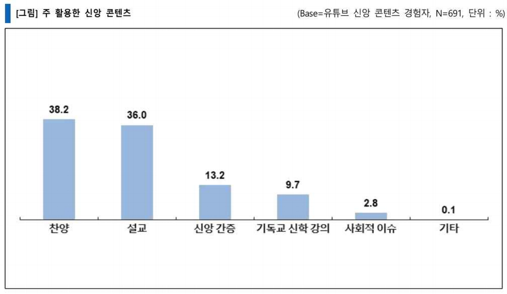 특히 개신교인의 약 70%가 유튜브 신앙 관련 콘텐츠 시청 경험이 있었던 것으로 조사됐다.
