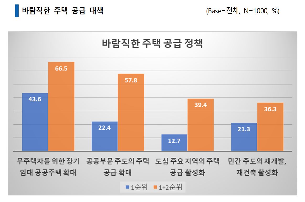 또한 가구소득과 가구 자산이 높을수록 ‘도심 주요 지역의 주택 공급 활성화’와 ‘민간 주도의 재개발 재건축 활성화’가 높은 응답률을 보였다.