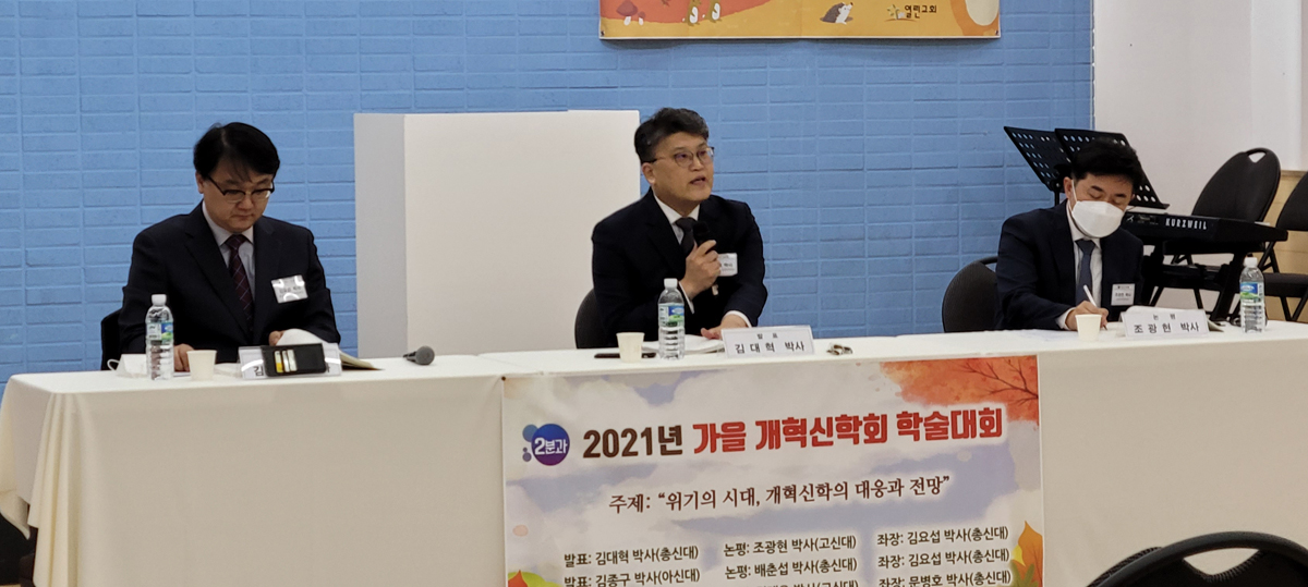 김 박사는 개혁신학회(회장:박응규 박사)가 지난 10월 23일(토) 오전 10시 '위기의 시대, 개혁신학의 대응과 전망'이라는 주제로 개최한 가을학술대회에서 '현대 설교의 위기와 그리스도 중심적 복음 설교의 재발견'이라는 연구논문을 발표했다.